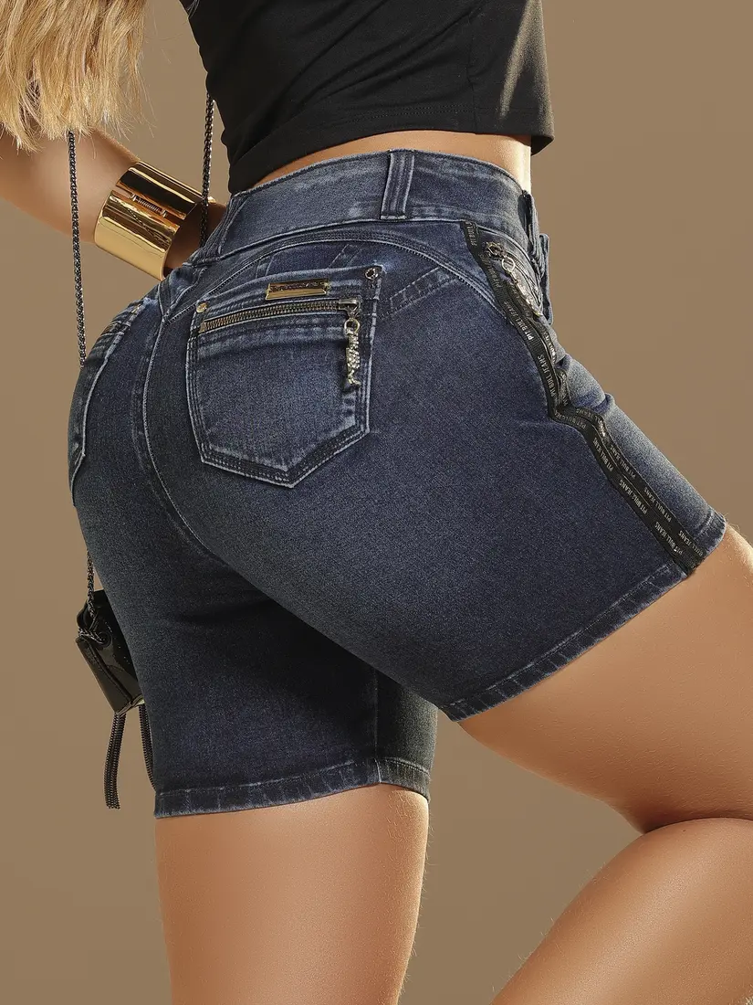 Bermuda Jeans Estilosa e Modeladora com Lateral Personalizada Pit Bull Jeans