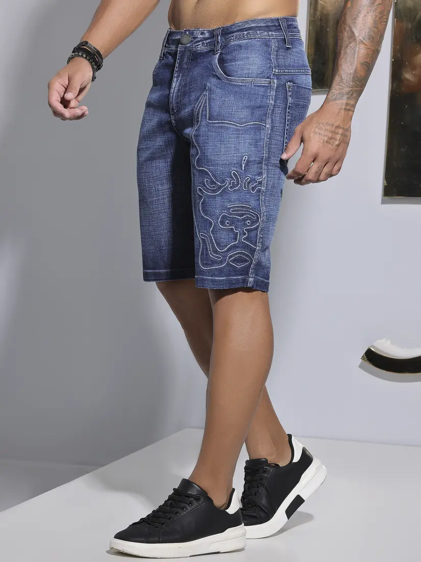 Essa bermuda masculina combina estilo técnico com visual ousado e moderno. A peça foi desenvolvida com bordado industrial aplicado com E.V.A interno e forro, trazendo textura e sofisticação ao design. A modelagem estruturada garante conforto e caimento preciso, enquanto a lavanderia com lixado total, corrosão e efeitos destroyed entrega uma estética urbana marcante. O cós com botão flexível, braguilha funcional e costuras reforçadas com linha azul marinho completam o acabamento técnico da peça.