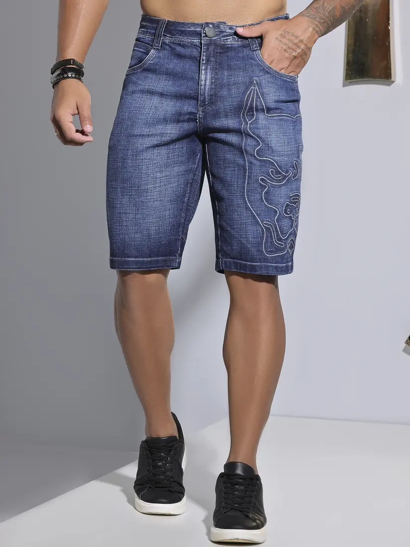 Bermuda Masculina com Bordado Lateral Estiloso Pit Bull Jeans
