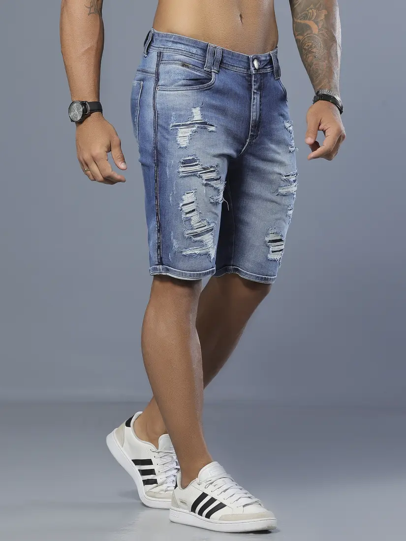 Bermuda Masculina com Estilo Destroyed e Detalhe Lateral Pit Bull Jeans