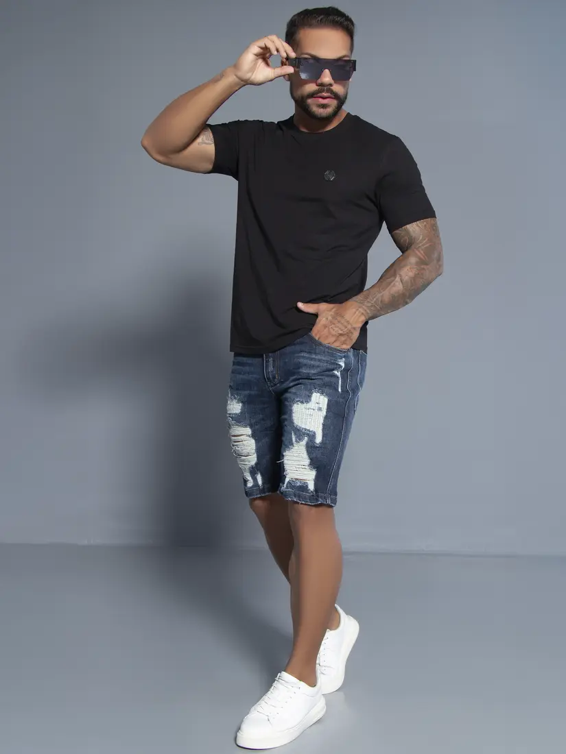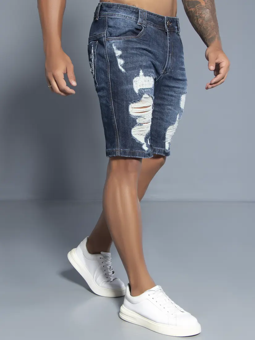 Bermuda Masculina Pit Bull Jeans Estilosa e Sofisticada com Detalhes Destroyeds