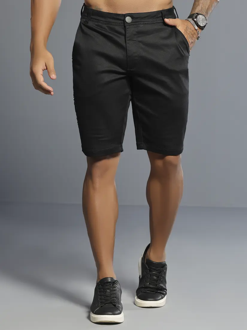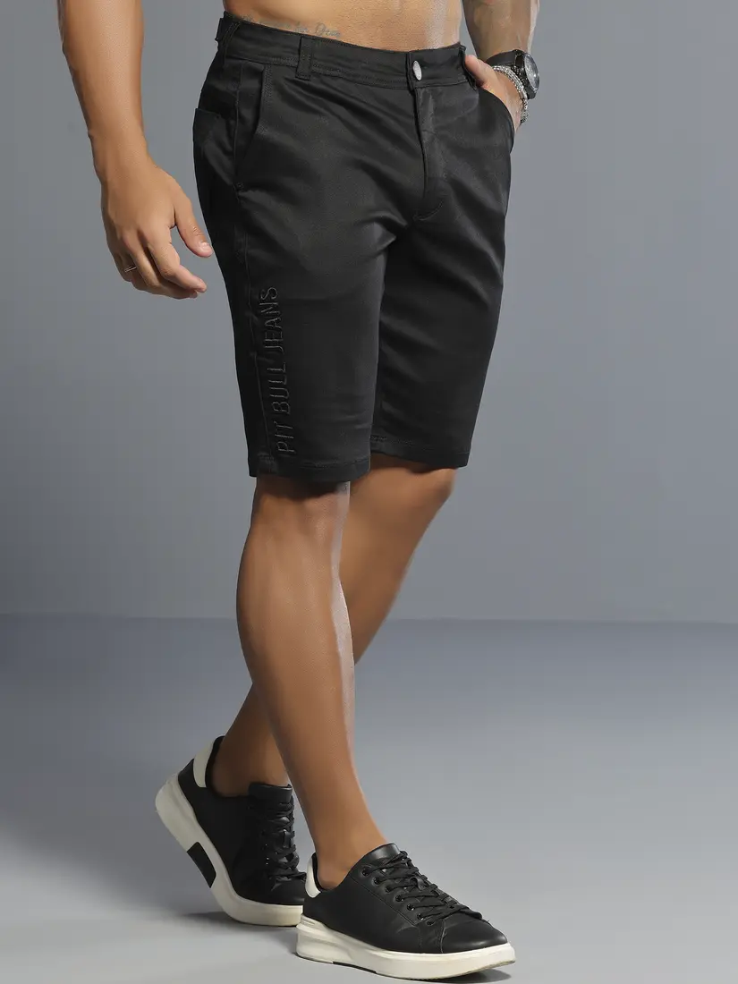 - Bermuda Masculina Preta Casual Pit Bull Jeans com Bordado Lateral