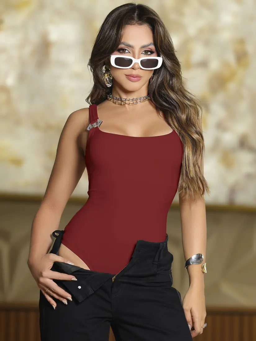 Com design elegante e funcional, este body foi desenvolvido para proporcionar caimento ajustado com estilo e conforto. O modelo valoriza as curvas femininas sem abrir mão da leveza, sendo confeccionado em tecido de alta elasticidade que molda o corpo com suavidade. O destaque da peça fica por conta dos enfeites metálicos aplicados nas alças, que adicionam brilho discreto e um toque refinado à composição. A ausência de bojo garante liberdade e um visual mais natural.