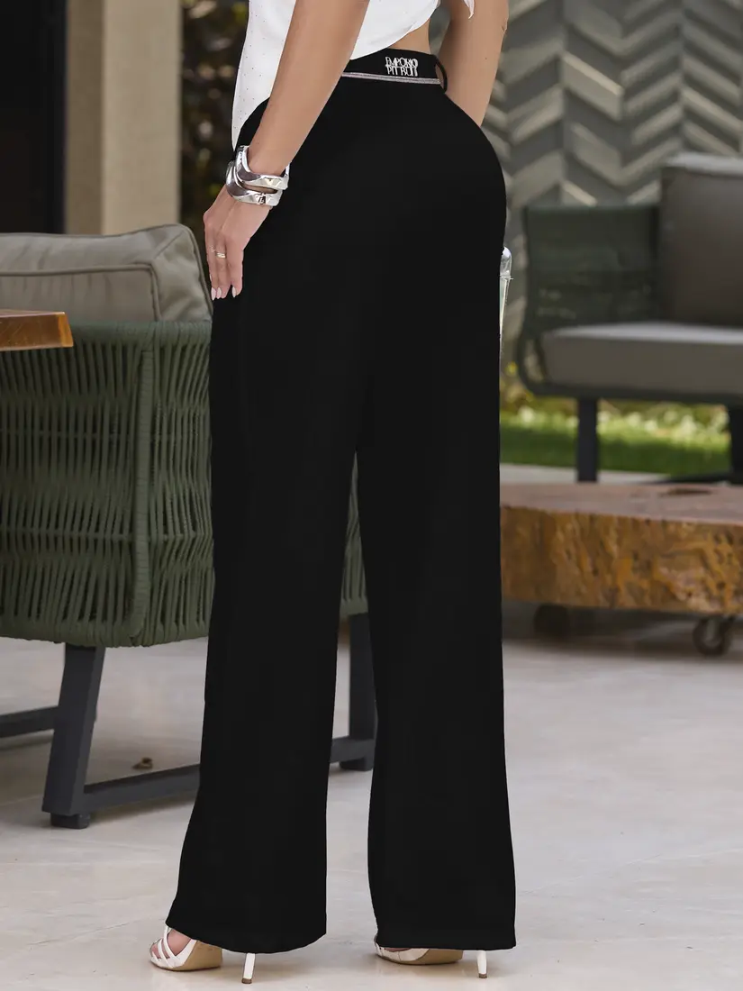 Pensada para unir elegância e atitude, esta calça de alfaiataria foi desenvolvida com tecido de toque refinado e visual sofisticado. Acompanha um cinto com tubo de strass fixado por enfeite exclusivo, conferindo um brilho controlado e feminino à composição. A modelagem apresenta cintura alta com caimento impecável, bolsos frontais funcionais e acabamento técnico que valoriza o shape. Perfeita para compor looks de impacto com elegância, versatilidade e estilo elevado.