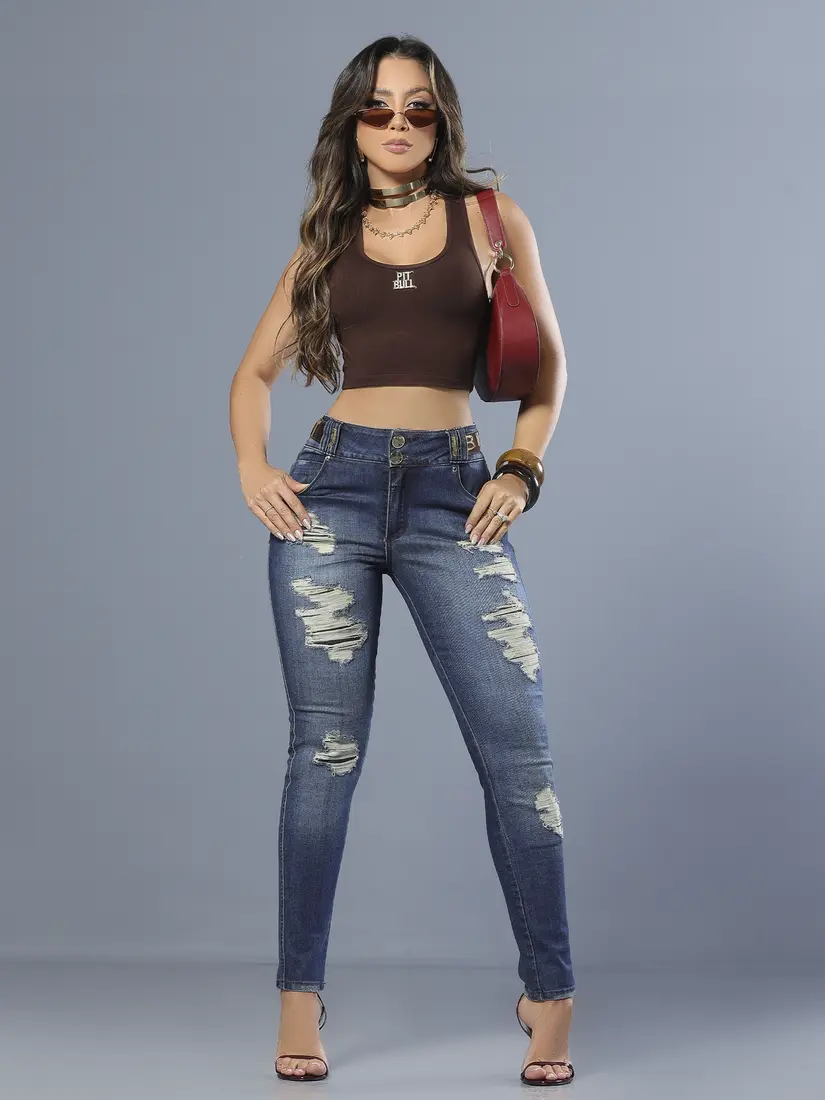 Calça Boyfriend Confortável e Sofisticada com Toque Destroyed Pit Bull Jeans