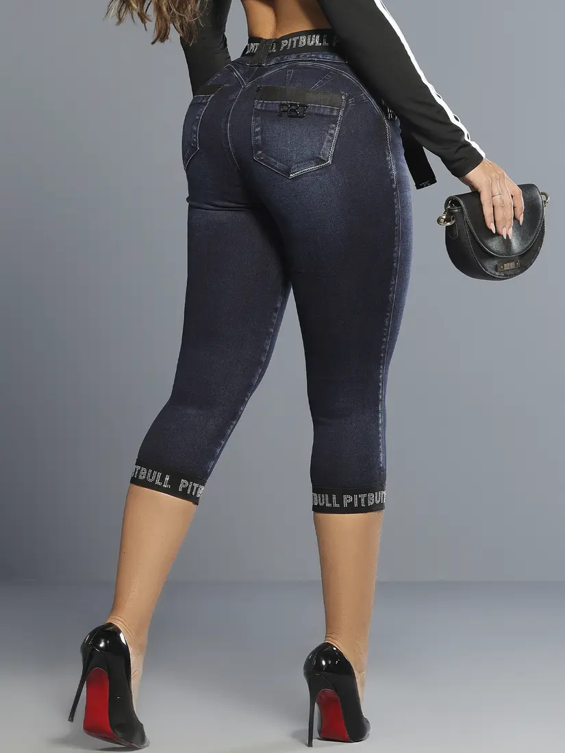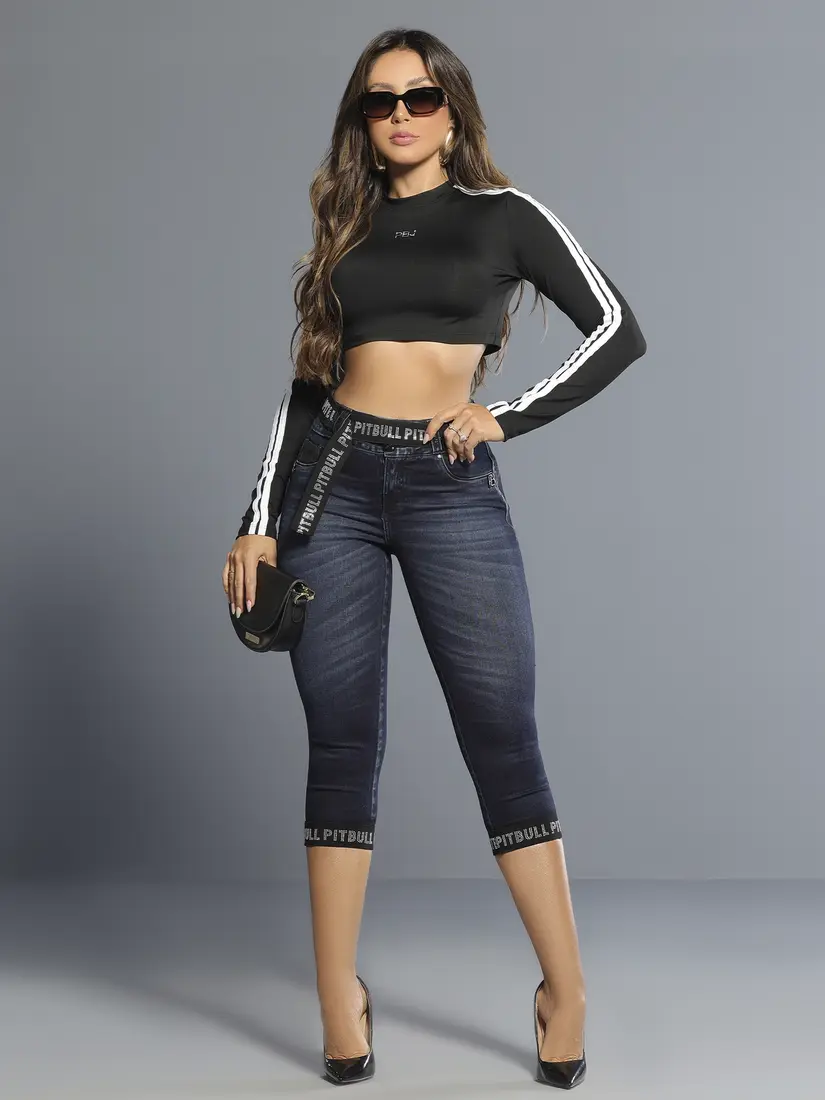 Desenvolvida para valorizar a silhueta com ajuste moderno e proposta fashion marcante, a Calça Capri Pit Bull Jeans combina modelagem estruturada com comprimento intermediário que destaca a região da panturrilha. O destaque da peça está no cinto em elástico personalizado com cristal e nas barras com aplicação de elástico de 4 cm, criando identidade forte e acabamento diferenciado. A construção estratégica garante conforto, firmeza e visual sofisticado .