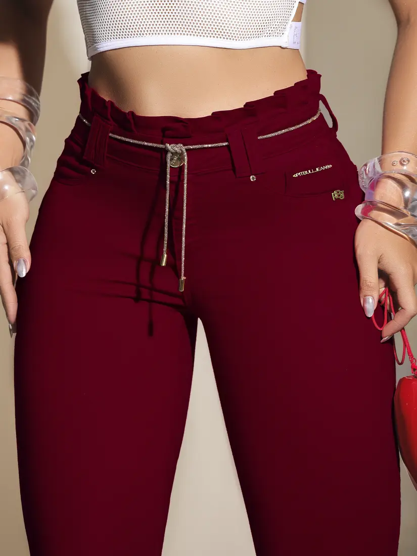 - Calça Clochard Vermelha Modeladora com Cinto de Strass Pit Bull Jeans