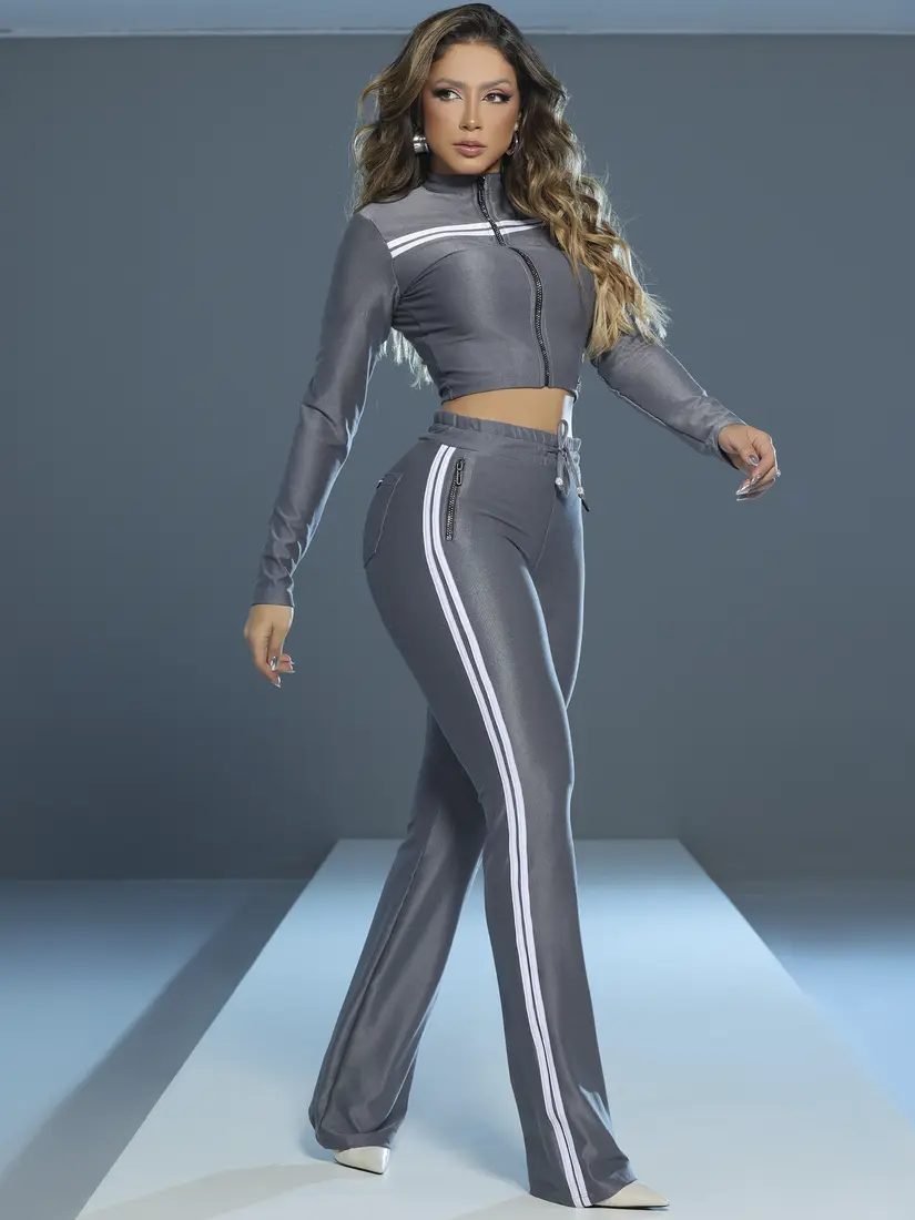 Essa calça foi pensada para proporcionar um visual técnico e sofisticado, com toque esportivo contemporâneo. Desenvolvida em tom chumbo, a peça conta com modelagem ajustada e estruturada que realça a silhueta com conforto, além de trazer o cós alto com elástico interno e amarração em rolitê funcional com ponteiras. Os recortes laterais com viés branco garantem contraste elegante e identidade visual. Um detalhe especial é o zíper decorativo na frente e os bolsos traseiros estruturados com entretela, que equilibram design e praticidade com acabamento refinado.