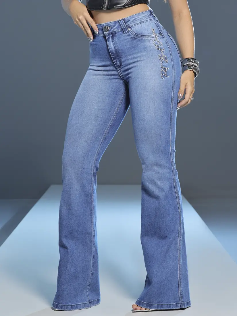 - Calça Flare Sofisticada e Realçadora com Bordado de Strass Pit Bull Jeans