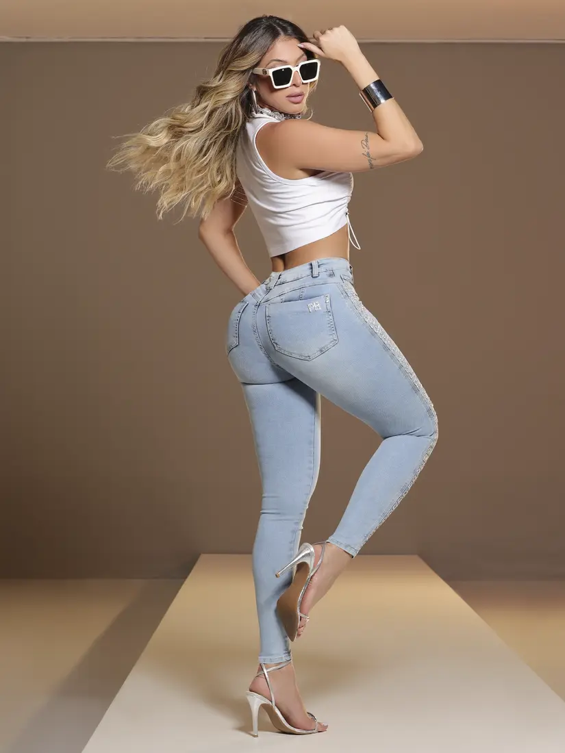 Com modelagem que valoriza as curvas e acabamento técnico de alto padrão, esta calça hot pants foi desenvolvida para proporcionar estilo marcante e estrutura firme. Confeccionada em denim com elasticidade equilibrada, a peça traz cintura alta e lavagem especial com efeitos destroyed, laser arte e aplicação de detalhe sextavado com brilho cristal de 2 mm nas laterais da frente. O cós é finalizado com botão flexível de 23 mm e zíper azul marinho, enquanto os bolsos traseiros seguem gabarito atualizado para melhor ajuste. Ideal para produções ousadas com toque urbano e sofisticação moderna.