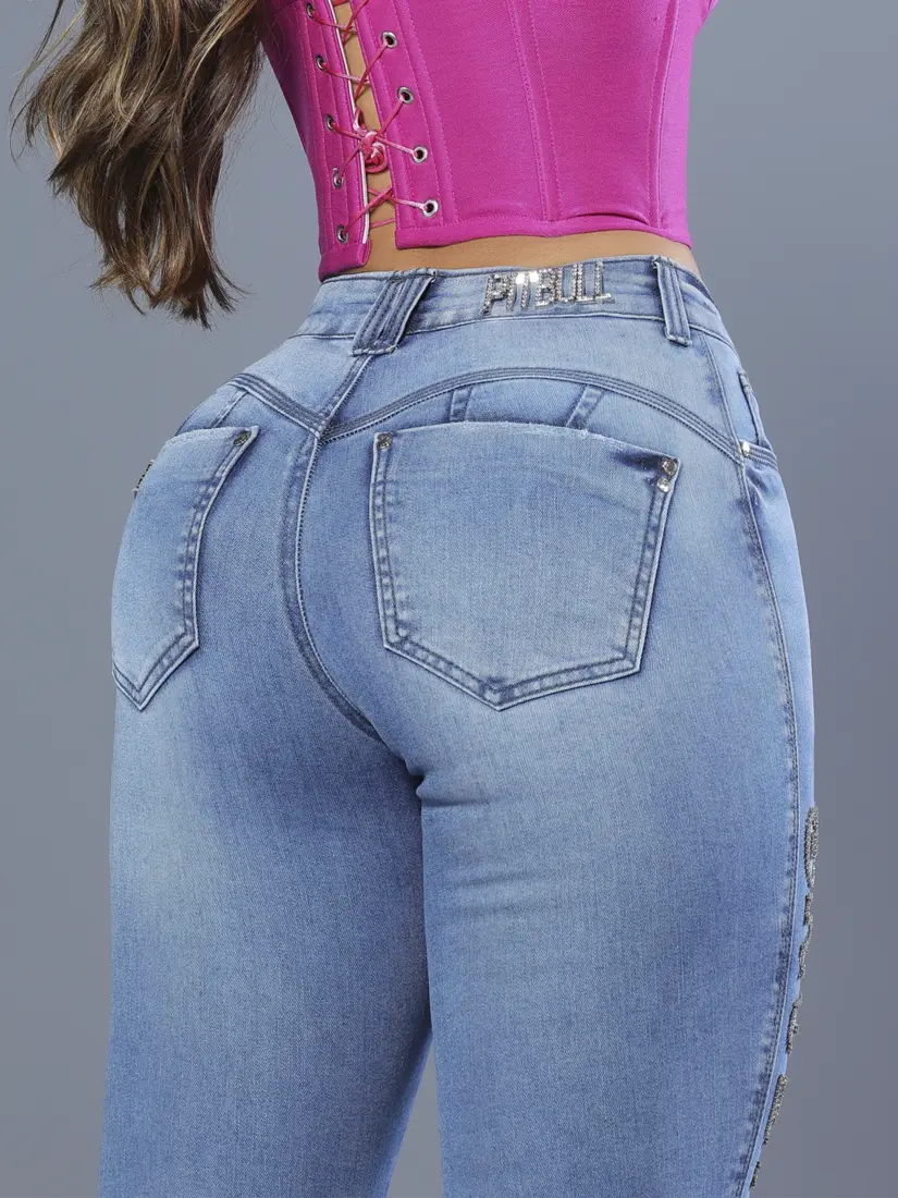Desenvolvida para destacar a silhueta com impacto visual e sofisticação, essa calça hot pants combina cintura alta modeladora com aplicação estratégica de laser nas laterais, que serve como guia para o bordado manual com correntes de strass. A peça entrega definição intensa das curvas, ajuste firme na cintura e acabamento premium que reforça a identidade marcante da Pit Bull Jeans.