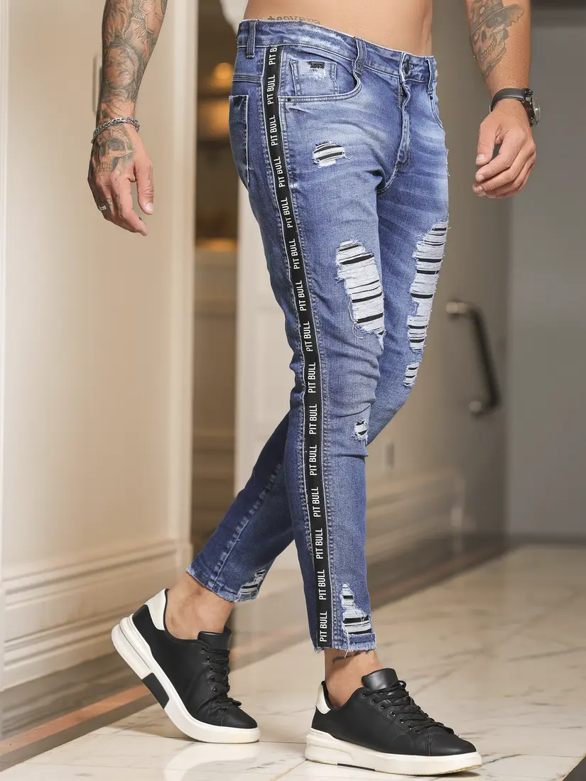 Calça Masculina Estilosa com Efeito Destroyed e Elástico Lateral Pit Bull Jeans