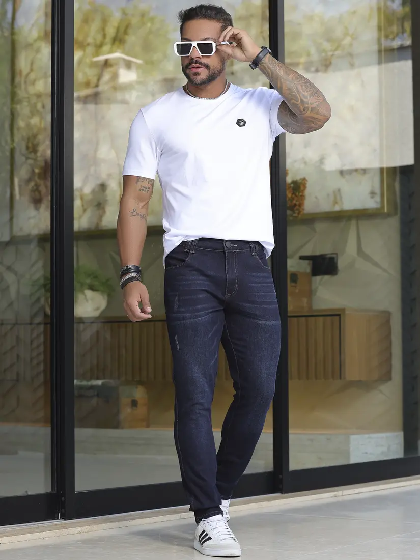 A Calça Masculina Pit Bull Jeans foi desenvolvida para o homem que busca equilíbrio entre estilo e conforto. Confeccionada em algodão com poliéster e elastano, o tecido proporciona estrutura firme, toque macio e leve elasticidade, garantindo liberdade de movimento e caimento perfeito. O tom azul escuro adiciona elegância ao visual, tornando a peça ideal para composições casuais e refinadas. O cós anatômico e os bolsos reforçados asseguram praticidade e durabilidade no uso diário.