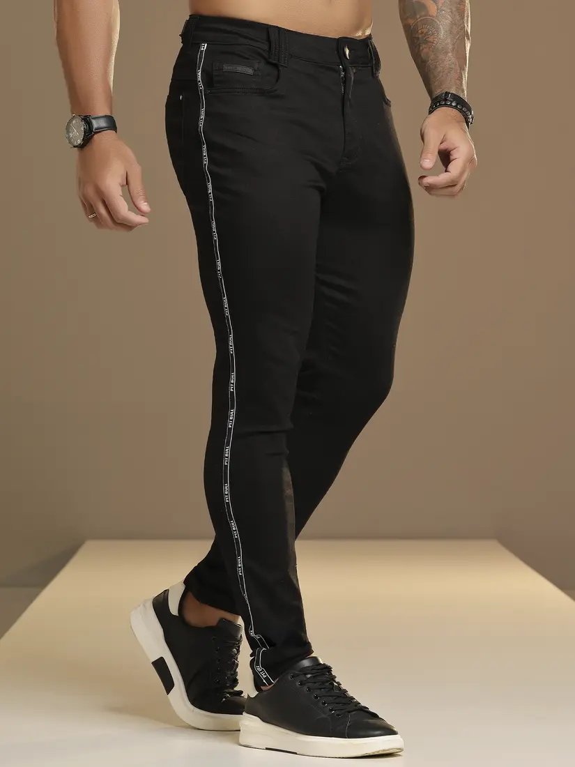Calça Masculina Preta Estilosa e Casual com Detalhe Lateral Pit Bull Jeans