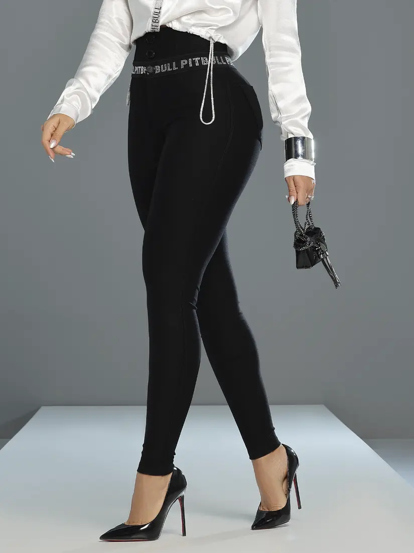 Calça Montaria Preta com Cintura Perfeita e Elástico Personalizado Pit Bull Jeans