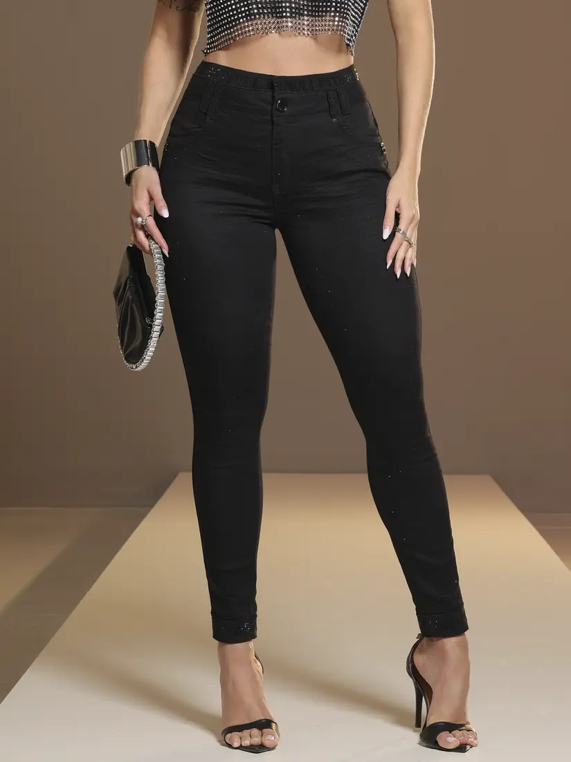 - Calça Preta Modeladora e Sofisticada com Toque de Brilho e Elástico Personalizado Pit Bull Jeans