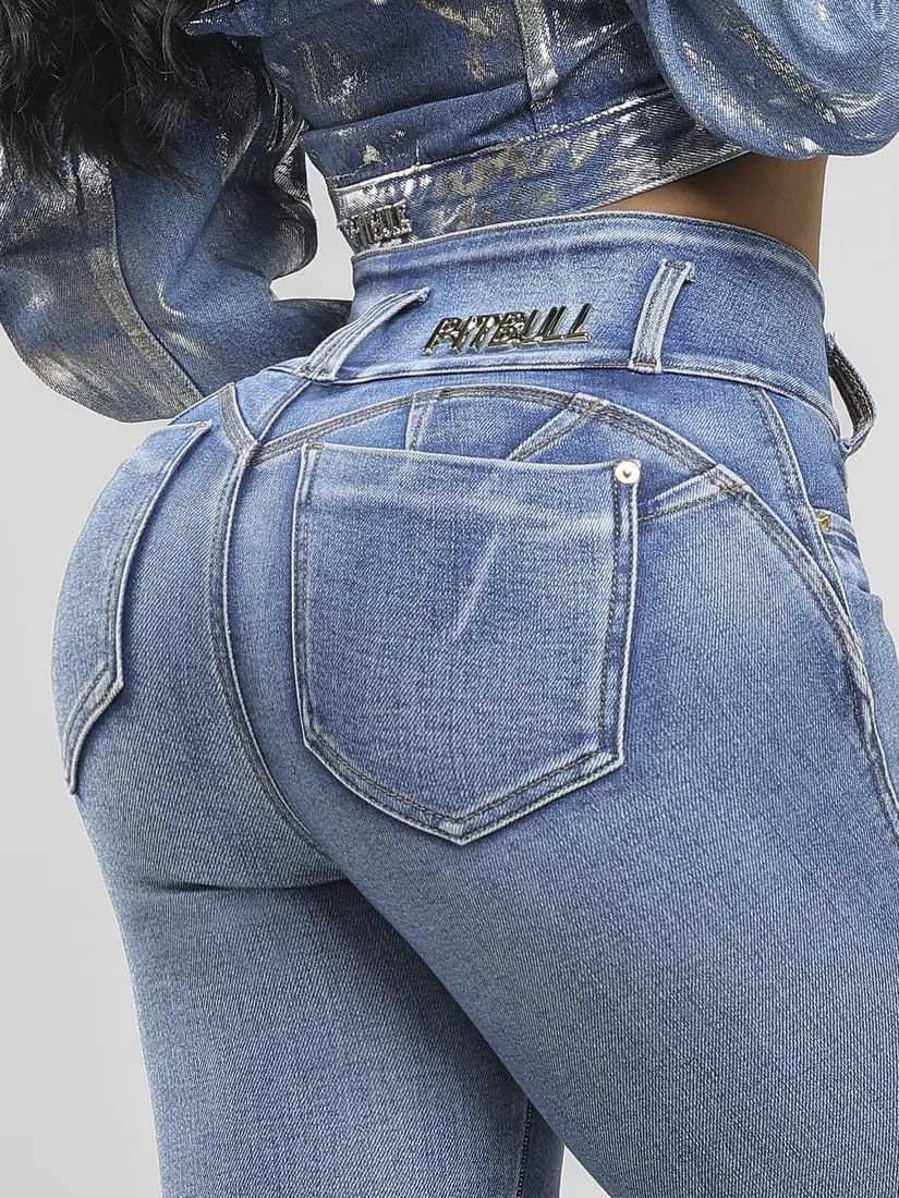 Calça Skinny Cós Largo Clara com Efeito Empina Bumbum Pit Bull Jeans