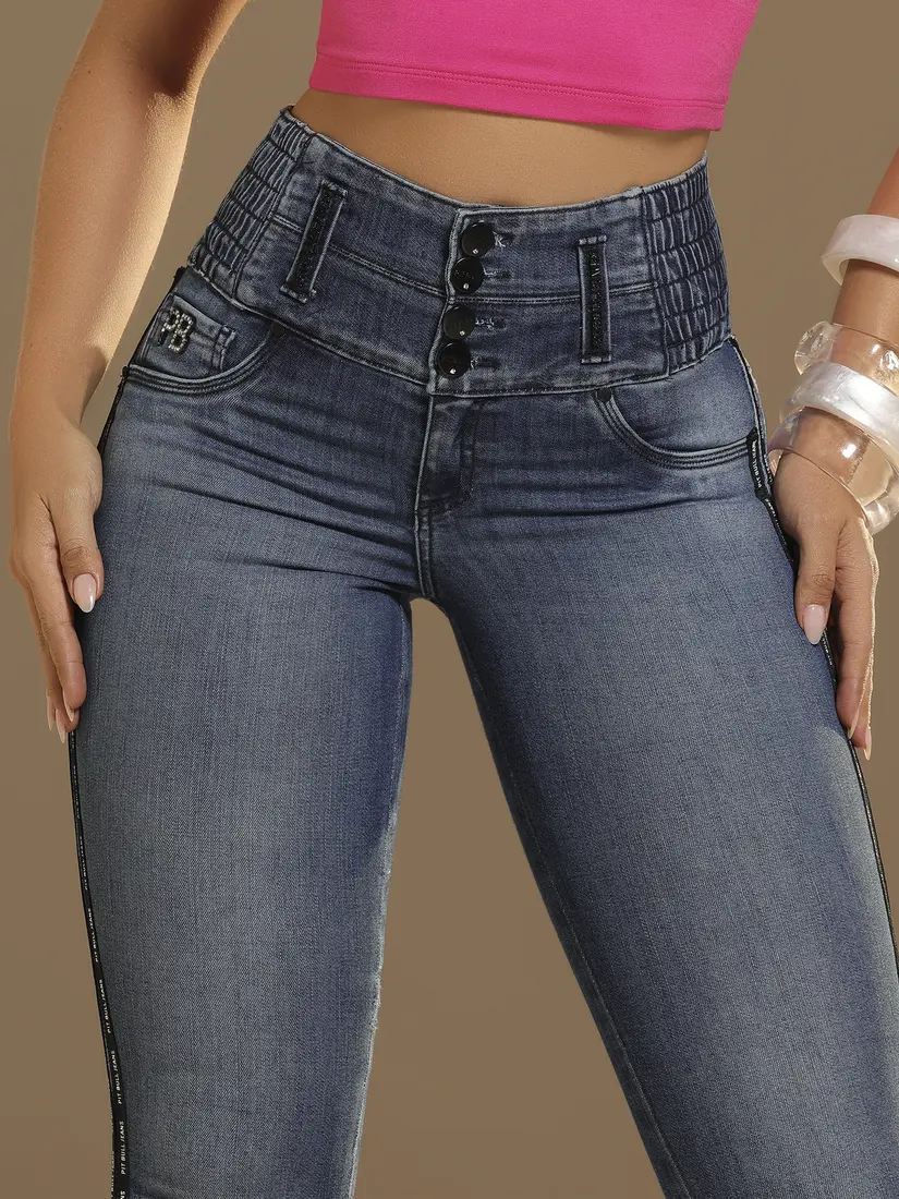 - Calça Skinny Cós Largo com Modelagem Ajustada e Detalhe Lateral Pit Bull Jeans