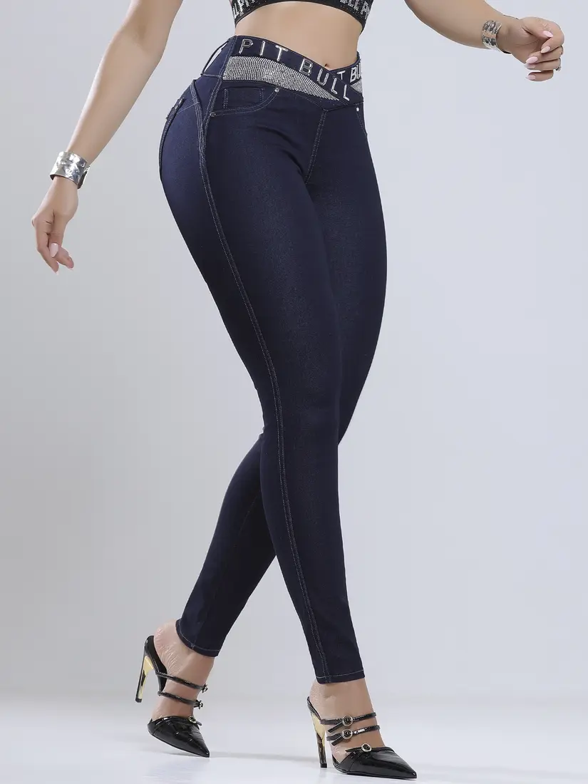 Calça Skinny Cós Largo Estilosa com Cós Personalizado Pit Bull Jeans