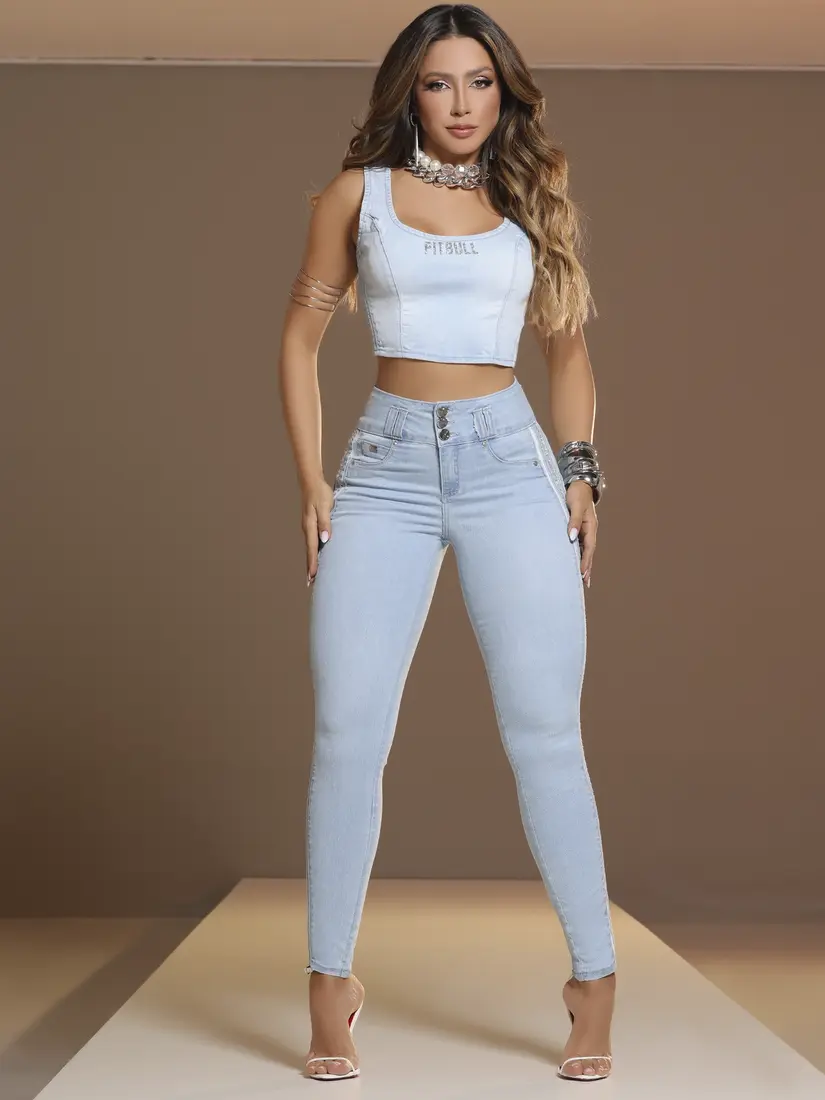 – Modelagem skinny com estrutura de alfaiataria jeans: valorização da silhueta com elegância