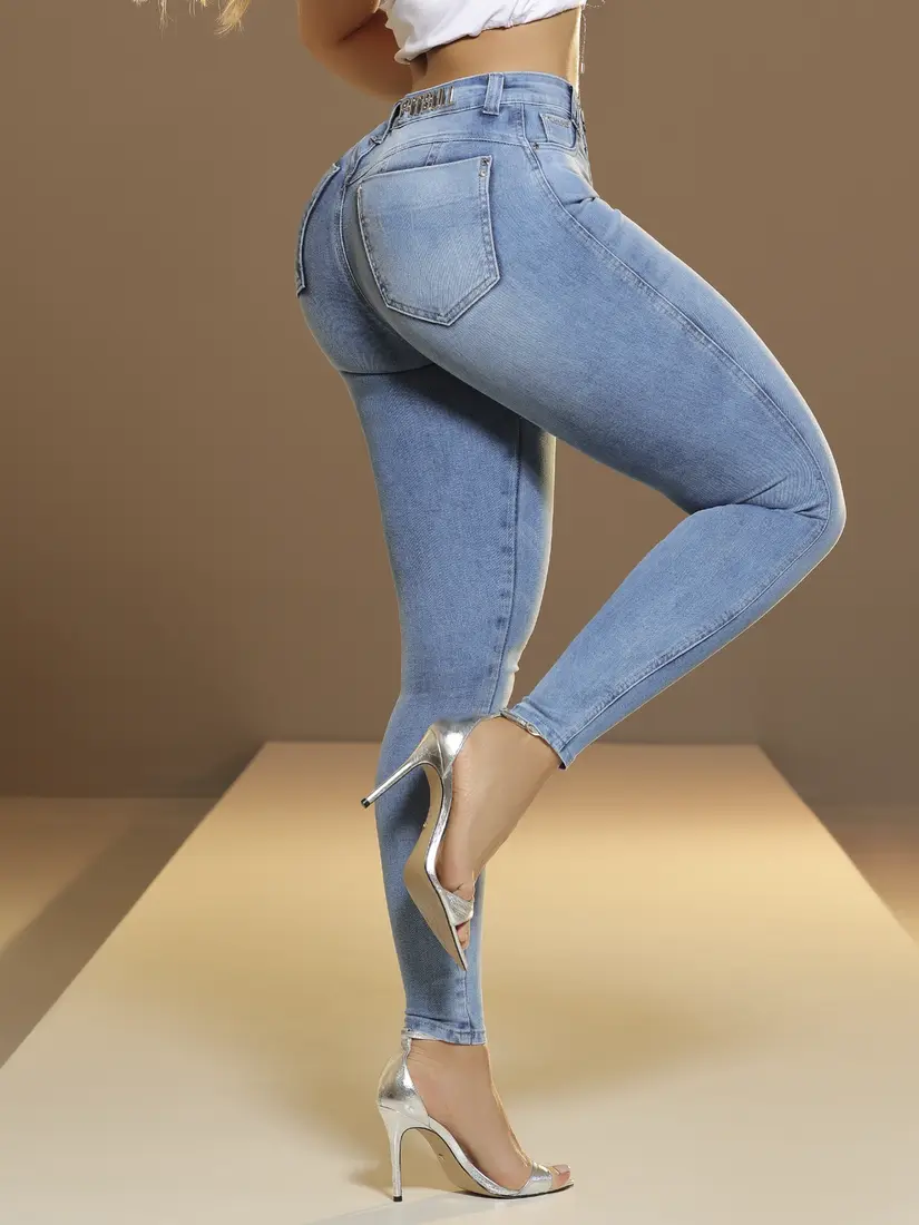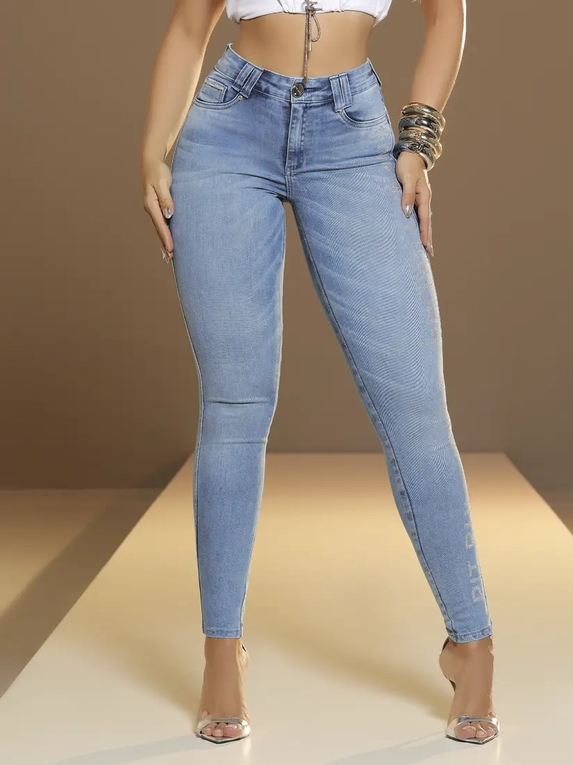 Desenvolvida para mulheres que buscam peças com personalidade e elegância, esta calça skinny hot pants alia tecnologia em lavanderia e aplicação de pedrarias para criar um visual impactante. A modelagem hot pants com cintura mais alta valoriza a silhueta e alonga a perna, enquanto os detalhes em strass sextavado, aplicados com precisão a laser, trazem brilho sofisticado. É uma peça pensada para ocasiões em que o destaque se faz necessário.