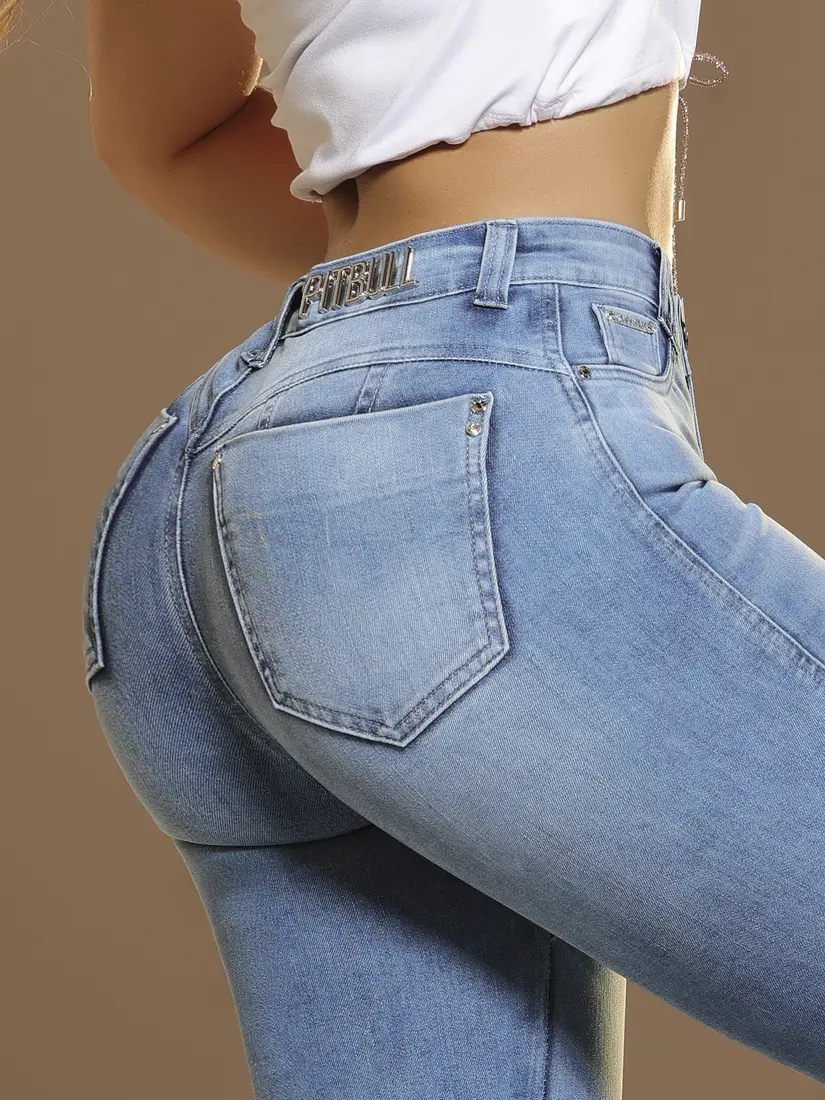 - Calça Skinny Hot Pants Cintura Alta com Logomania Pit Bull Jeans