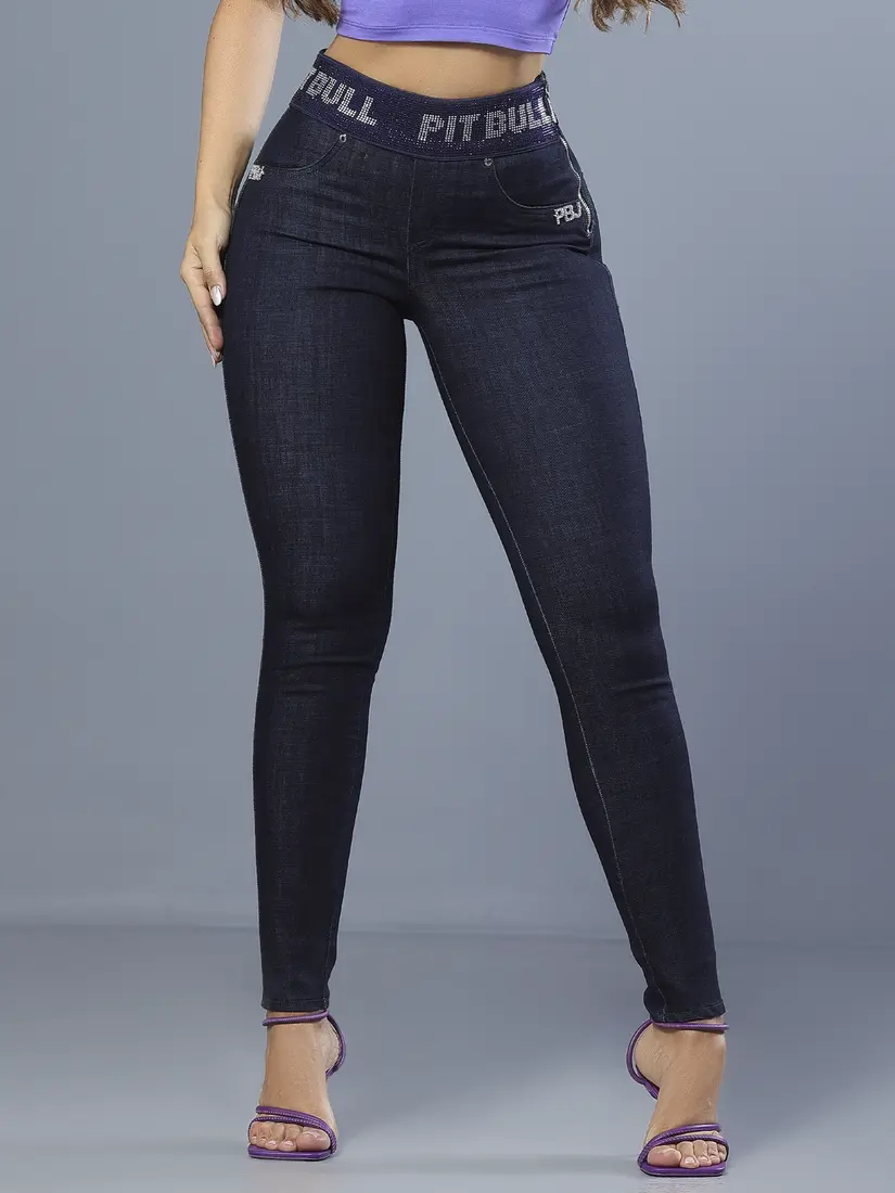 - Calça Skinny Modeladora com Cós Largo e Elástico Personalizado Pit Bull Jeans