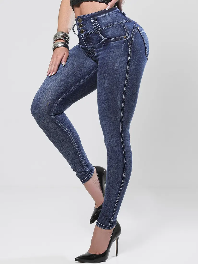 – Modelagem skinny com cós largo: valoriza a silhueta com estrutura firme e confortável