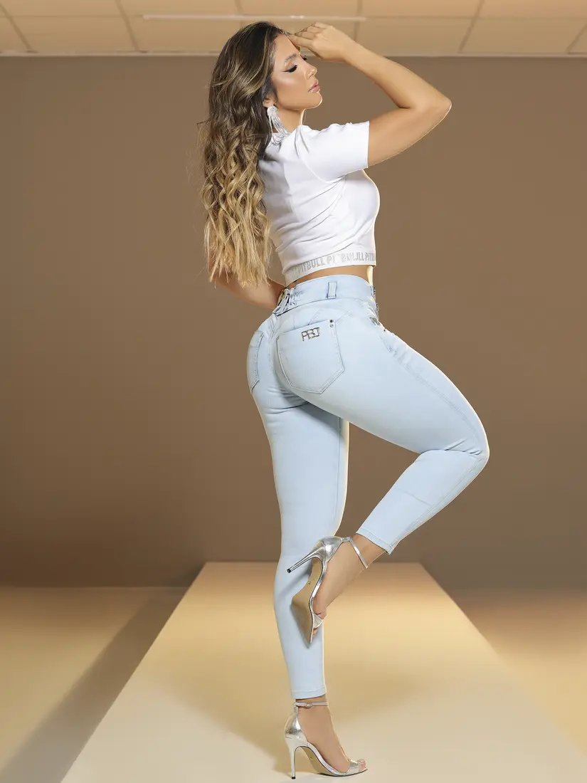 Com design ousado e elegante, esta calça skinny foi desenvolvida para destacar a silhueta com estilo marcante e acabamento técnico refinado. A lavagem cinza claro realça os detalhes de lavanderia, como lixado especial, laser e efeito destroyed. O bordado manual em degradê nas aletas, com strass alinhado, adiciona um toque de brilho e exclusividade. A modelagem justa é potencializada pelo bojo bundex removível, que garante sustentação e efeito lifting no bumbum. Possui cós com botão flexível e elástico interno para maior conforto no vestir.