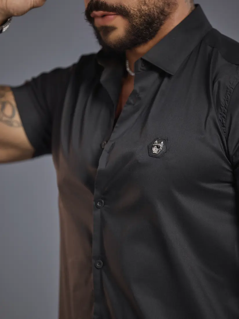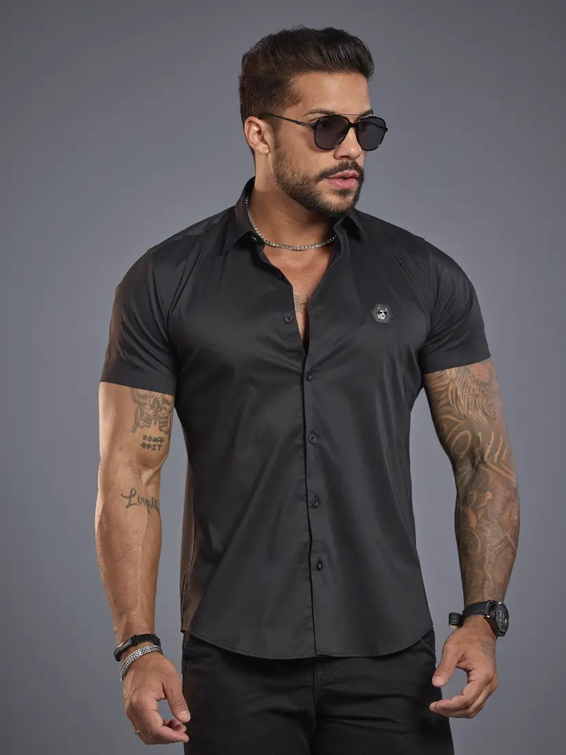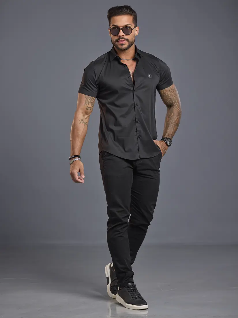 Com estética moderna e acabamento técnico, esta camisa masculina foi desenvolvida para unir praticidade e estilo em uma peça versátil para o dia a dia. A modelagem proporciona caimento ajustado e confortável, valorizando a estrutura do corpo. O tecido levemente encorpado com elasticidade confere liberdade de movimento, enquanto os botões aplicados e a plaquinha emborrachada em níquel agregam sofisticação ao visual. Ideal para composições casuais com atitude.