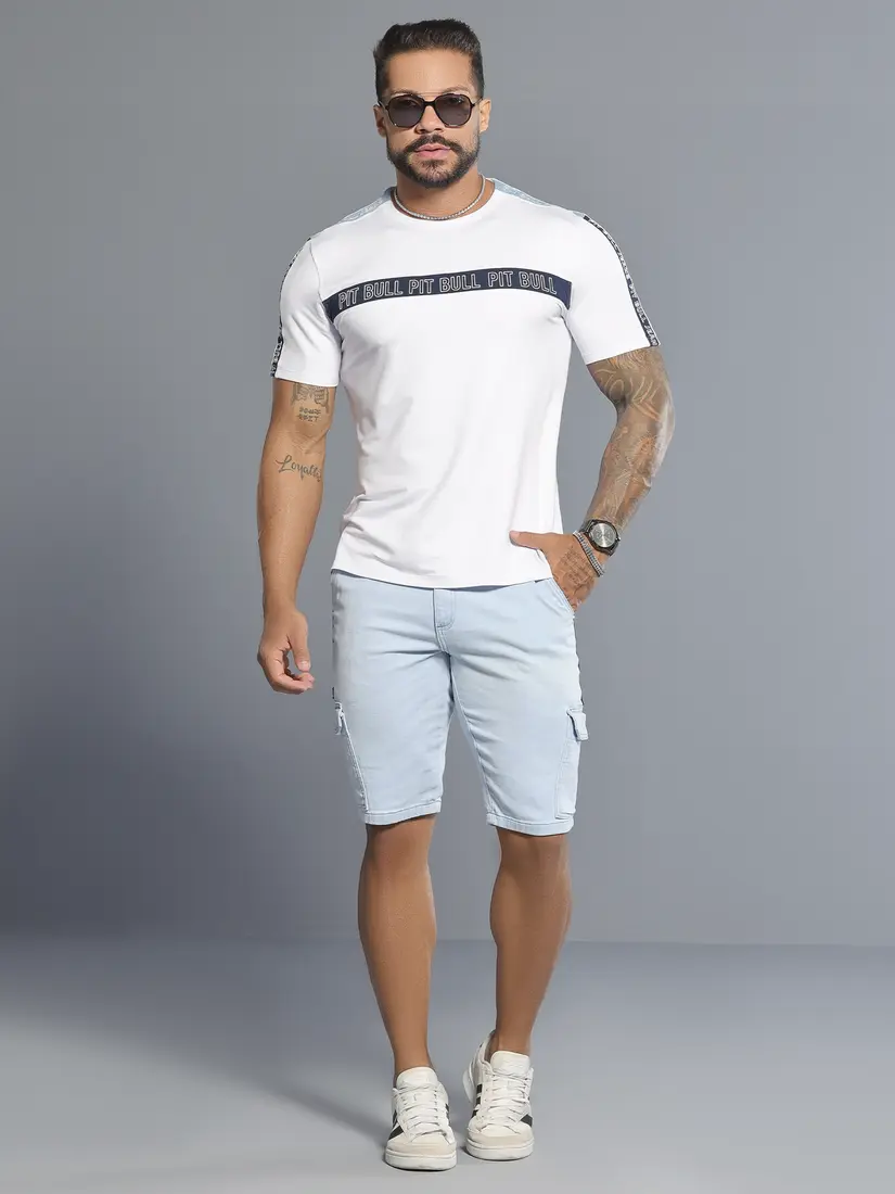 - Camiseta Branca Masculina com Estampa em Relevo e Detalhe nos Ombros Pit Bull Jeans
