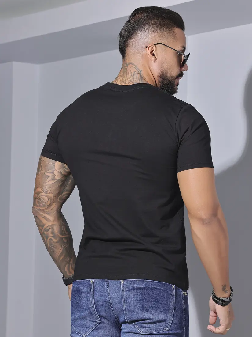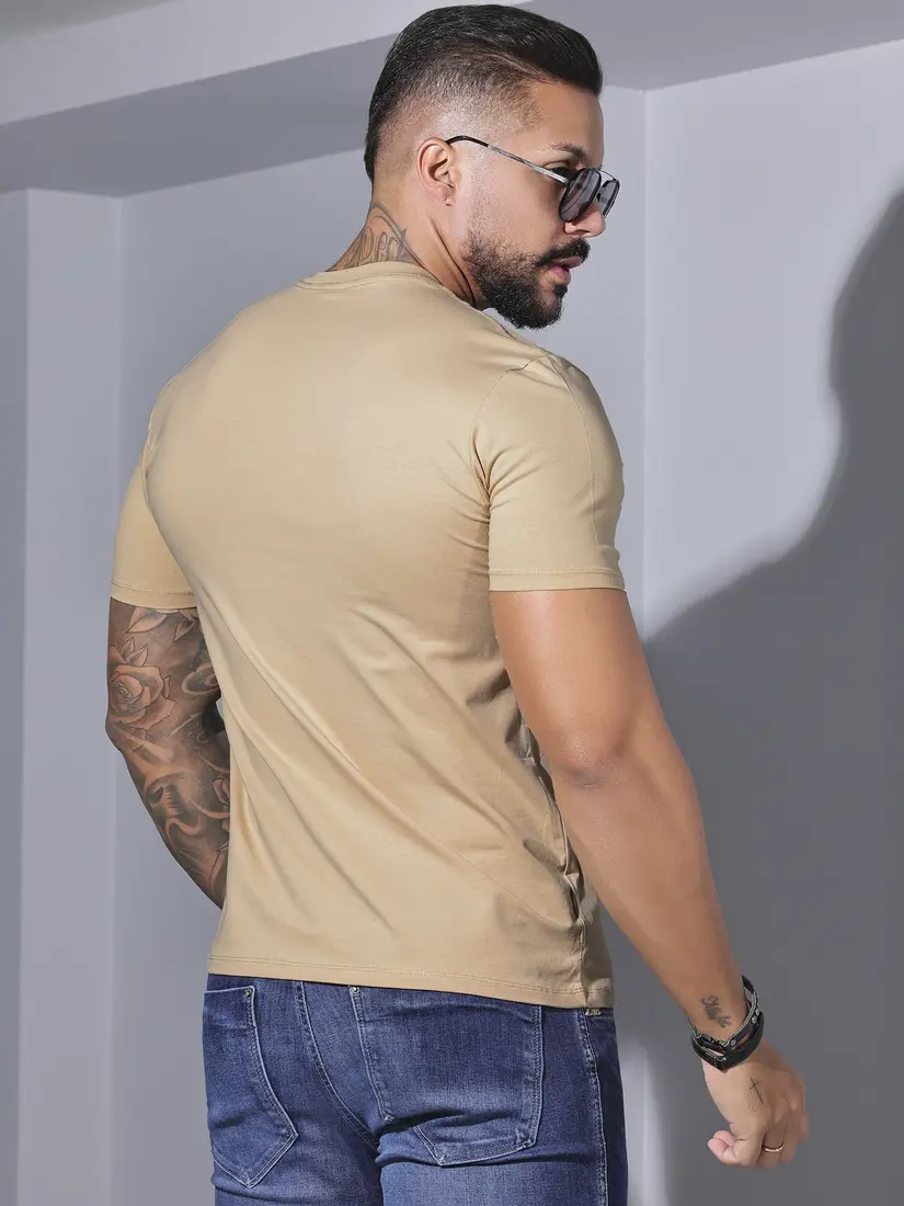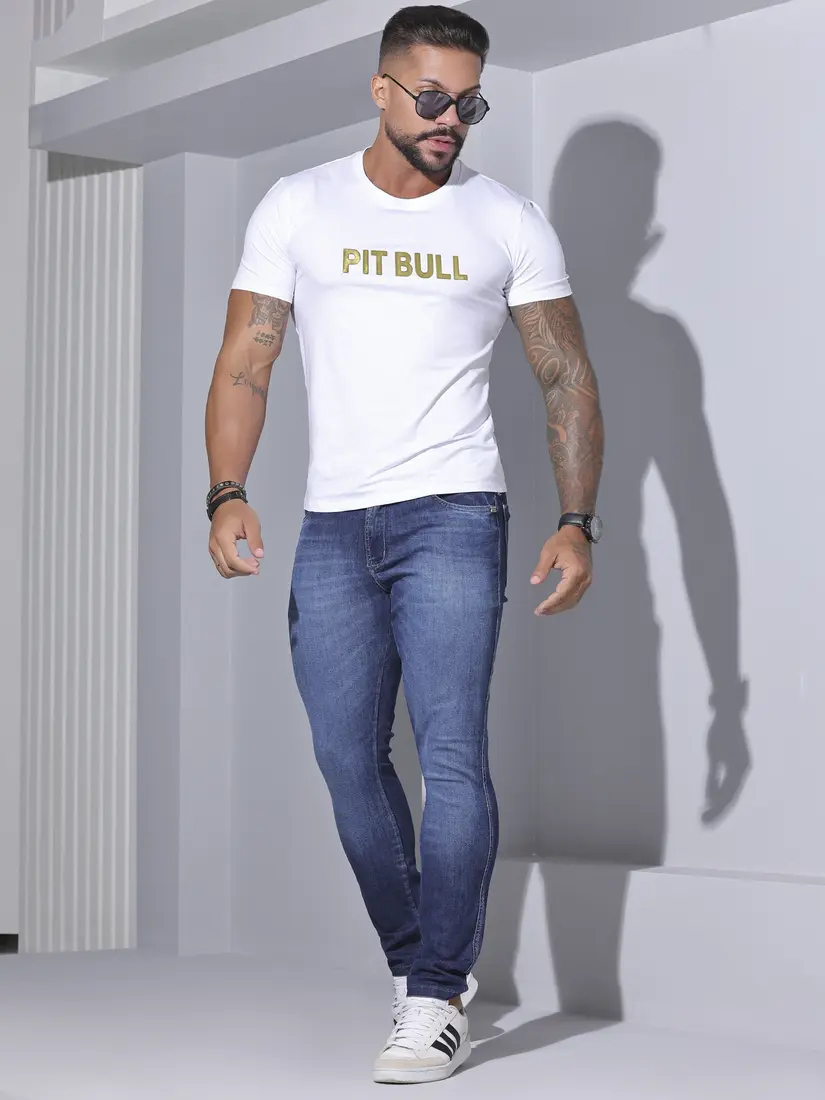 Camiseta Gola O Casual e Sofisticada com Estampa Metalizada Pit Bull Jeans