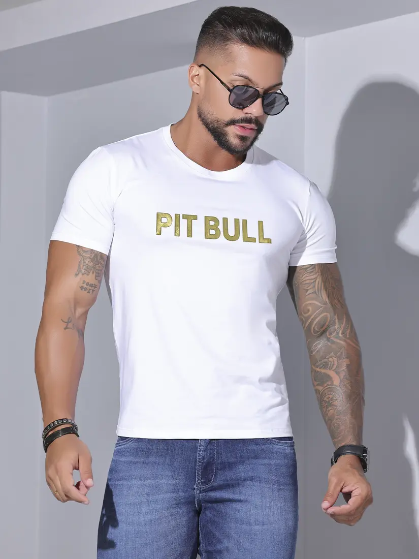 - Camiseta Gola O Casual e Sofisticada com Estampa Metalizada Pit Bull Jeans