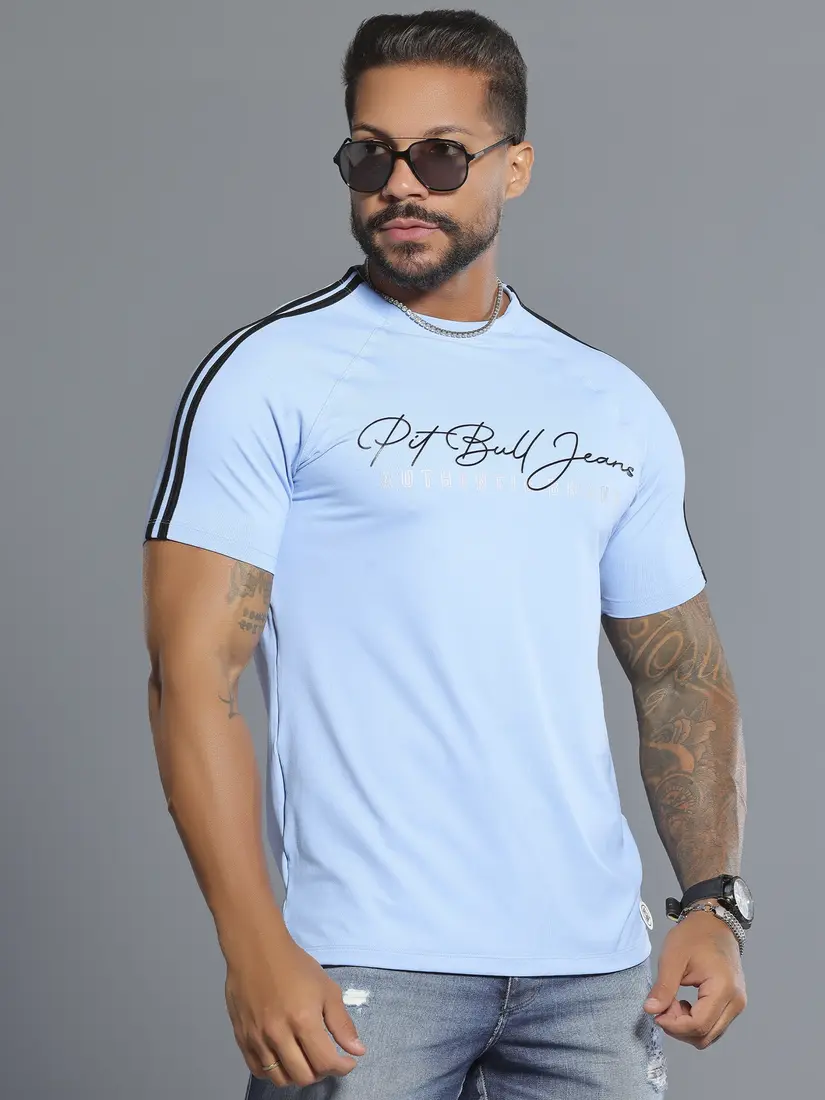 - Camiseta Gola O Masculina Azul com Relevo Foil e Detalhe nos Ombros Pit Bull Jeans