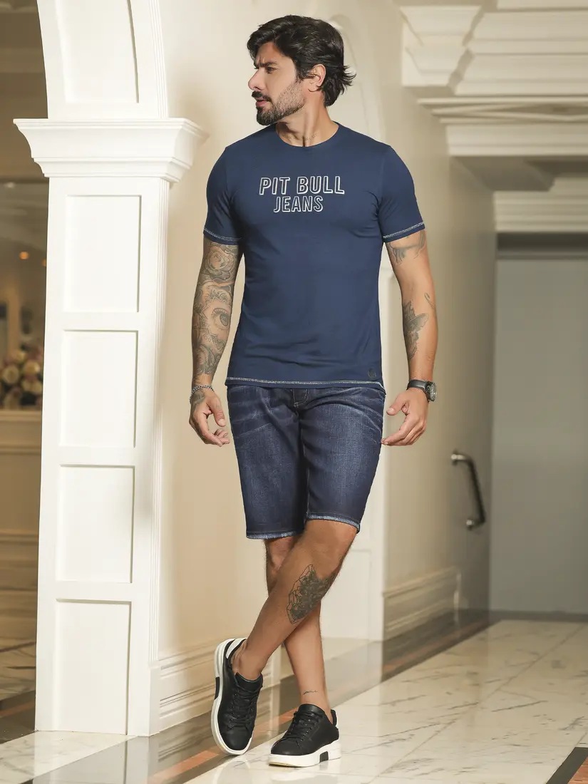 Aliando sofisticação e estilo técnico, esta camiseta azul marinho foi criada para valorizar o visual com identidade e estrutura refinada. A estampa frontal em relevo baixo e relevo bem alto, finalizada com foil prata, adiciona profundidade e brilho na medida certa. A gola com vira e os punhos nas mangas reforçam a estrutura da peça, enquanto a abertura lateral proporciona mobilidade com visual moderno. A etiqueta emborrachada aplicada na barra garante a assinatura sutil da marca.