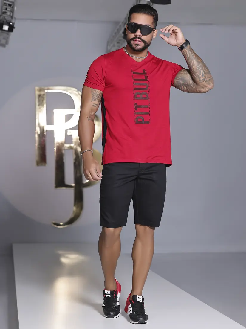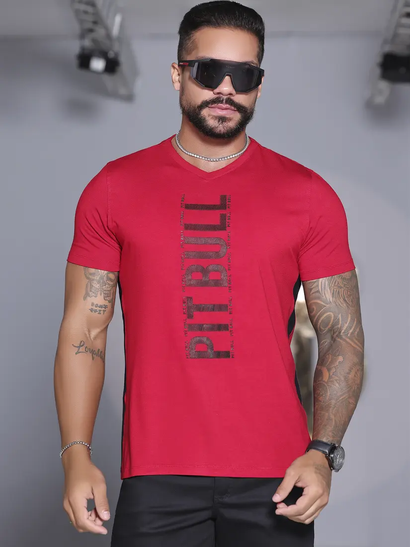 - Camiseta Masculina Gola V Autêntica com Estampa em Relevo Pit Bull Jeans