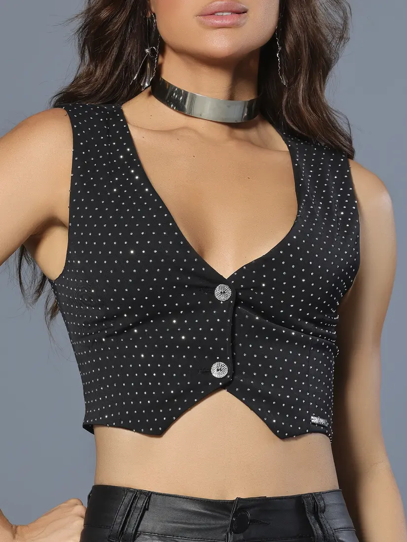 Colete Conceito Sofisticado e Estiloso com Detalhes em Pedrarias Pit Bull Jeans