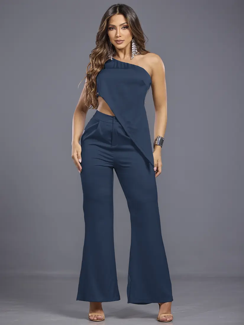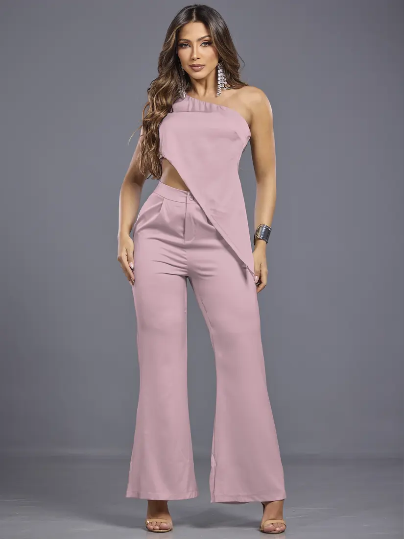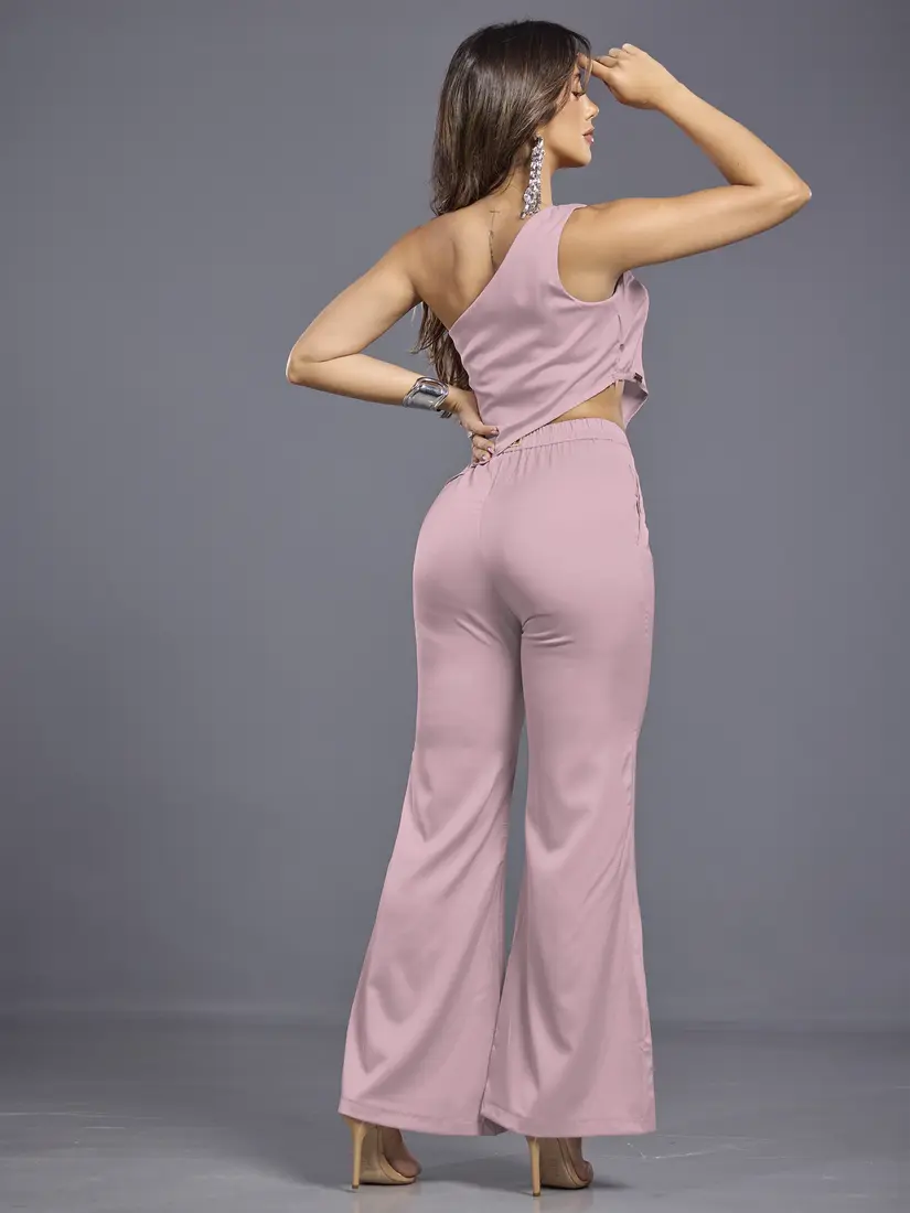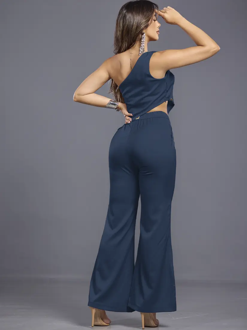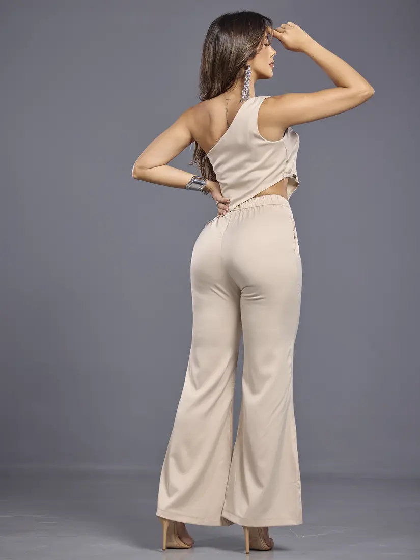 Com proposta elegante e funcional, este conjunto une praticidade e sofisticação em uma proposta moderna. A calça possui bolsos frontais funcionais forrados no próprio tecido, proporcionando conforto e usabilidade com estética limpa. A blusa traz caimento leve e detalhe de plaquinha metálica aplicada na barra, reforçando o acabamento técnico. Ambas as peças foram confeccionadas com tecido plano encorpado, garantindo caimento alinhado, leve elasticidade e visual estruturado. Ideal para composições monocromáticas com toque contemporâneo.