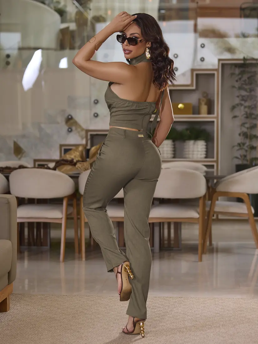Conjunto Calça e Cropped Elegante com Modelagem Sofisticada Empório Pit Bull