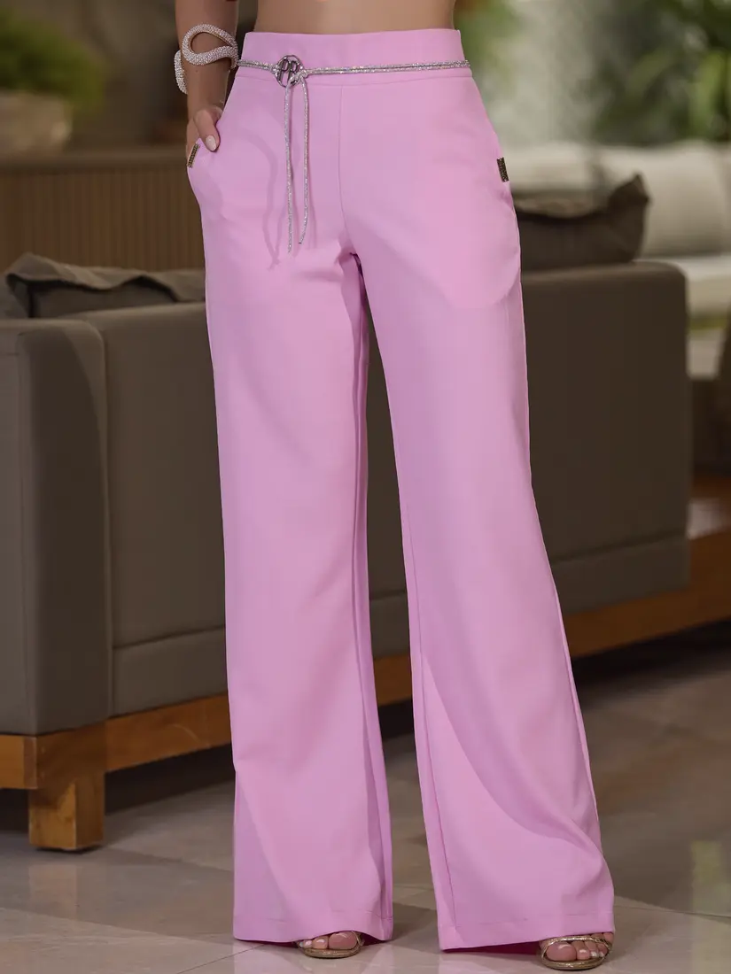 – Calça com cintura média e caimento ajustado: modelagem que valoriza o corpo com sofisticação