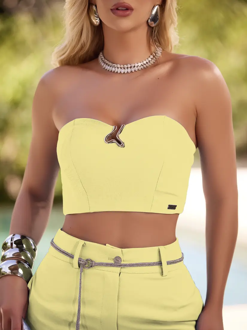 – Cropped tomara que caia com bojo fixo: sustentação firme e valorização do busto