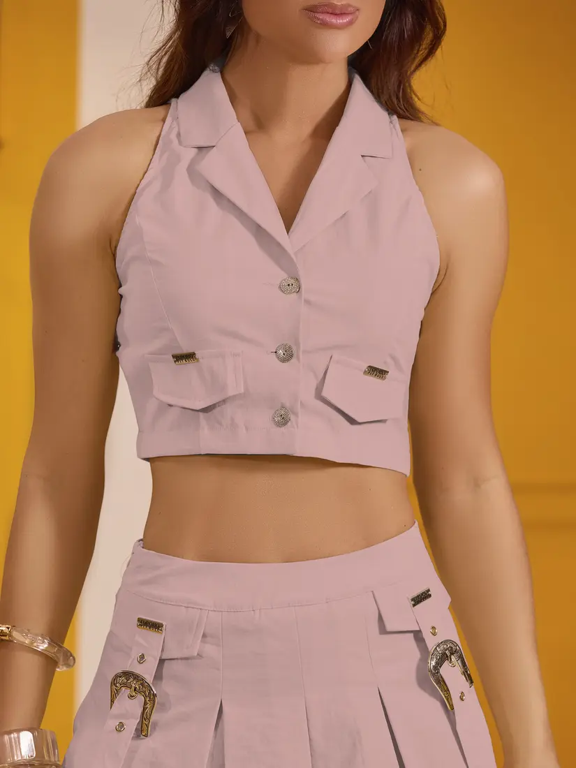 Conjunto Saia e Cropped Empório Pit Bull Elegante e Casual com Detalhes Únicos