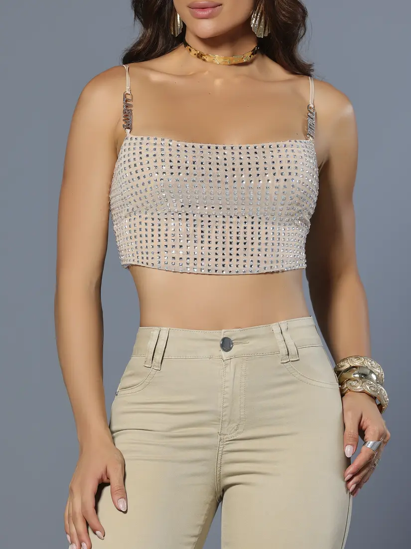 Este cropped conceito Pit Bull Jeans une brilho marcante, estrutura sofisticada e acabamento técnico para mulheres que buscam elegância com identidade. A peça é forrada com o próprio tecido, garantindo conforto e melhor acabamento interno. O destaque fica por conta da aplicação sextavada frontal, com efeito reluzente que valoriza a silhueta com discrição. As alças ajustáveis possuem enfeites metálicos exclusivos, fixados com acabamento reforçado. O zíper destacável nas costas traz praticidade e um toque moderno. Disponível nas variantes Preto com preto, Preto com prata, Bege com prata e Branco com prata.