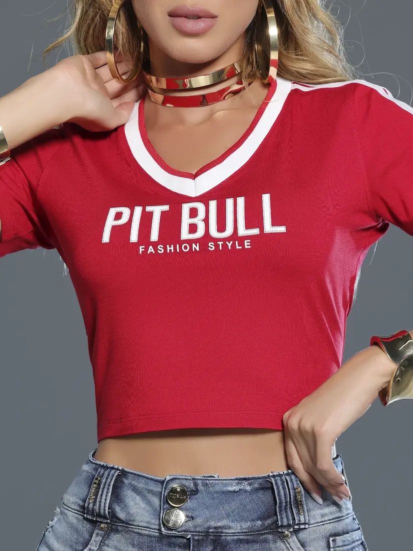 - Cropped Vermelho com Gola V Fashion e Casual Pit Bull Jeans