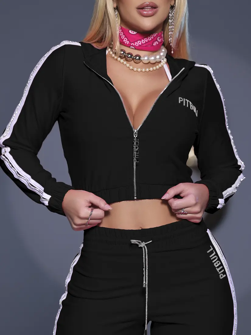 Jaqueta Moletom Pit Bull Jeans Confortável e Sofisticada com Detalhes de Strass