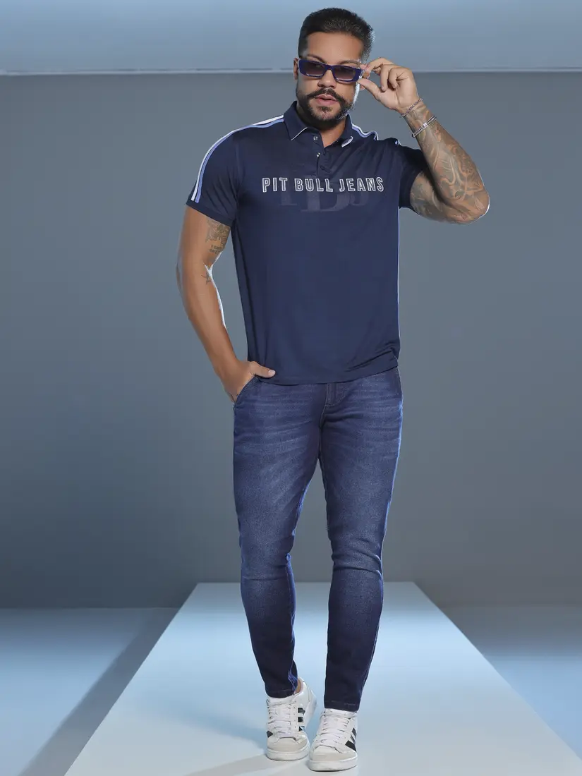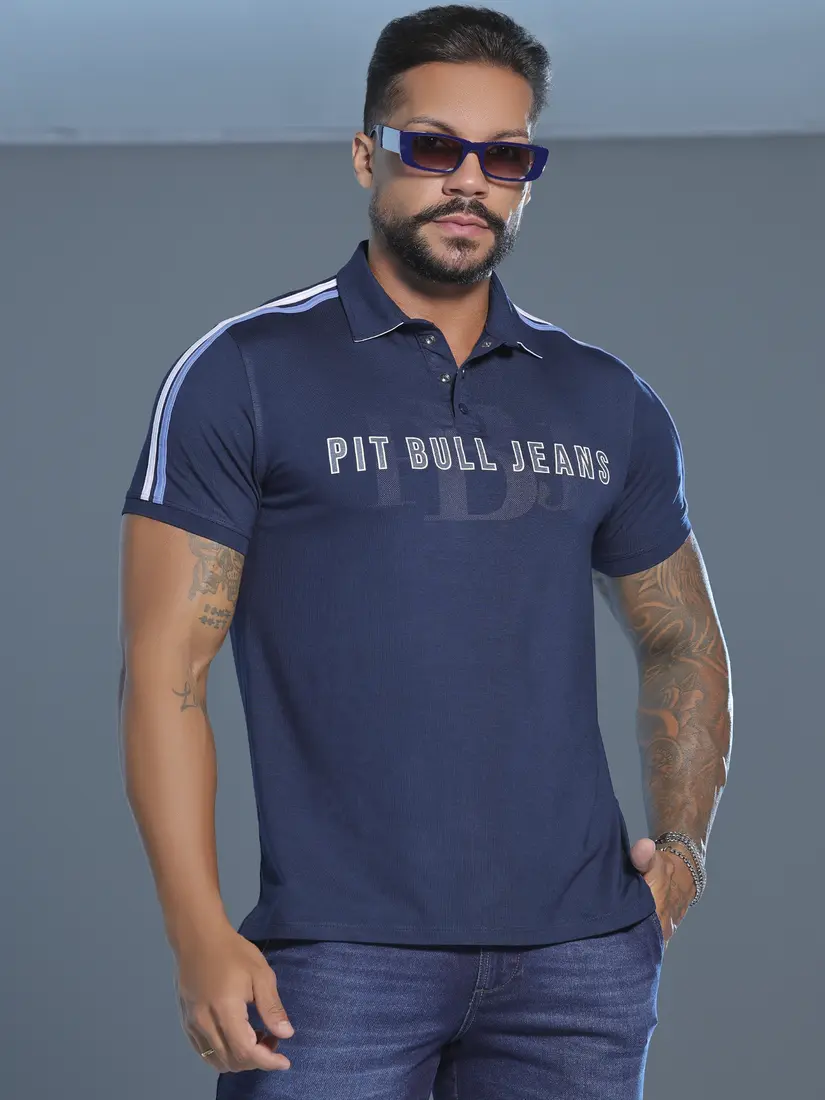 Polo Masculina Autêntica e Elegante com Logomania em Relevo Pit Bull Jeans