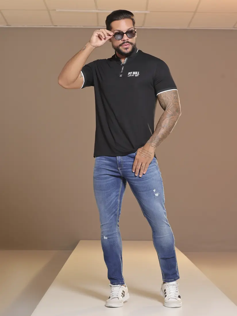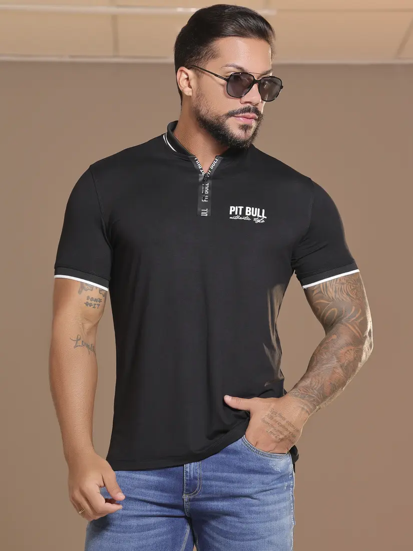 Polo Masculina Preta Sofisticada e Autêntica Pit Bull Jeans