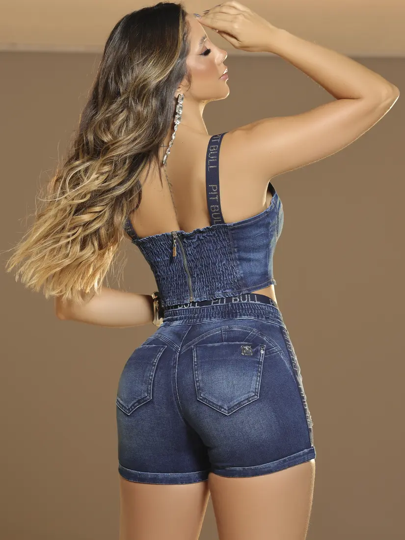 Short Jeans Estiloso com Elástico Personalizado e Amarração Pit Bull Jeans