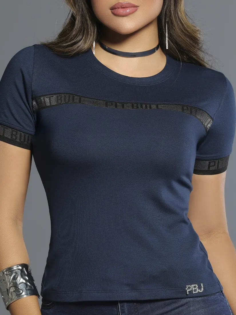 – Gola com acabamento em vira do próprio tecido: conforto e estrutura