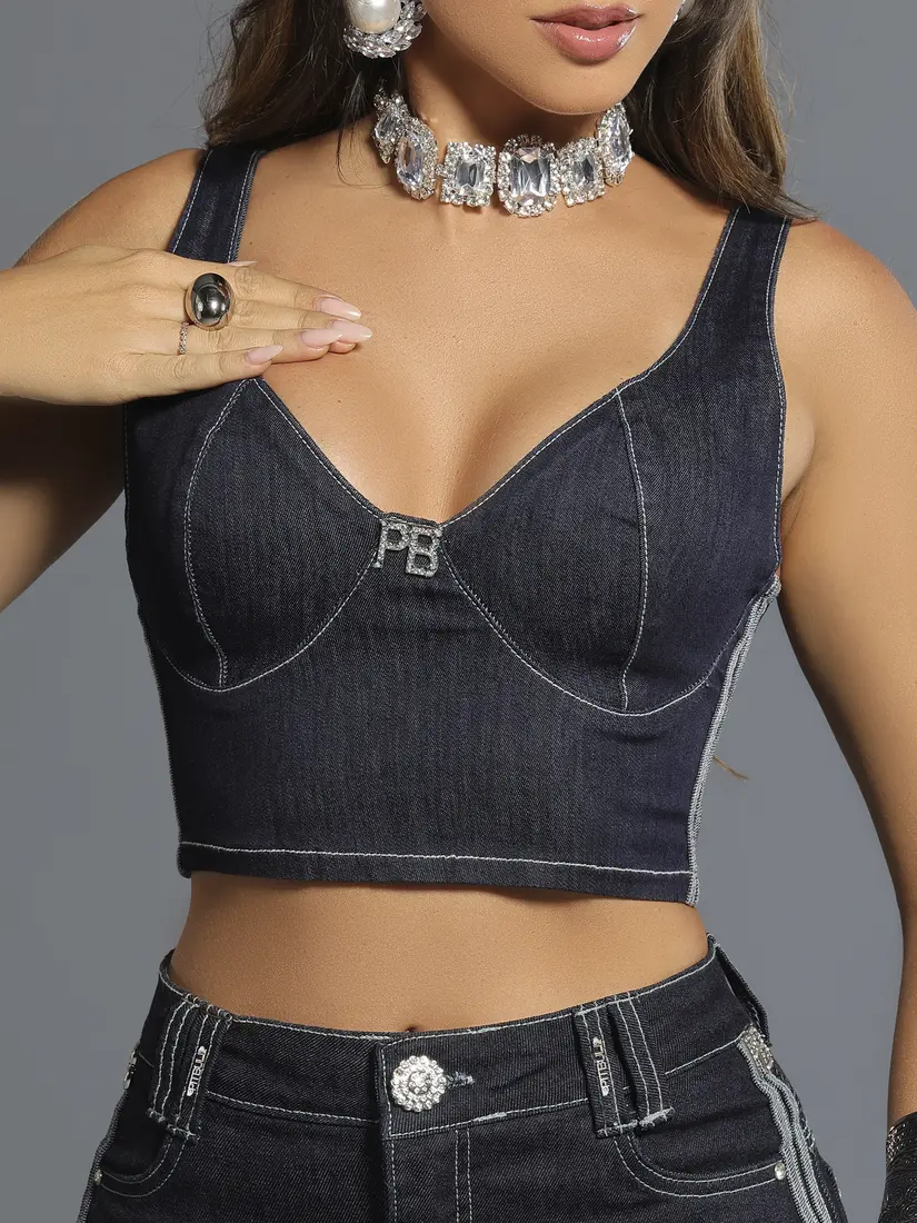 - Top Cropped Jeans Escuro Estiloso com Zíper Traseiro Pit Bull Jeans